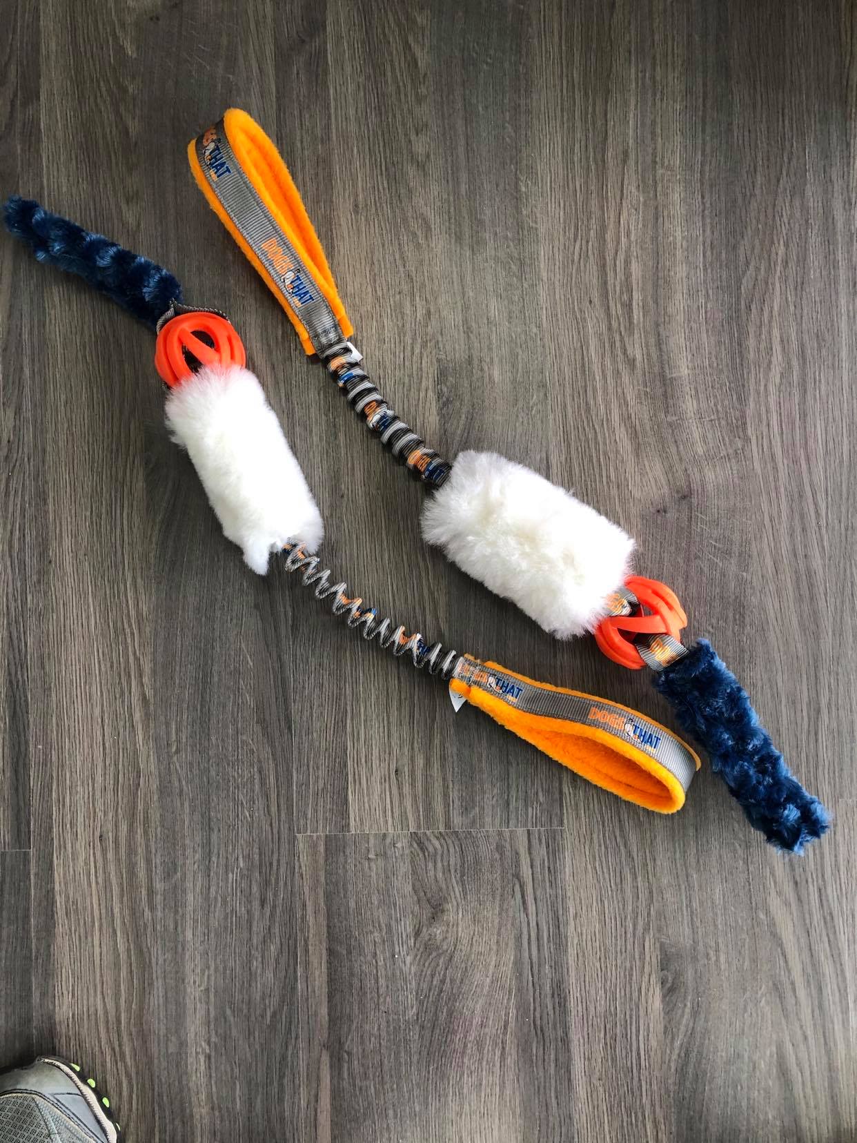 The DT BAAA Ball is made up of custom Dogs That webbing (climbing strength), shearling, plush fleece and a breathe right ball. Designed as an interactive toy that is not meant to be left with your furry friend unsupervised. A great training toy that can be brought out to help reward during those training sessions.